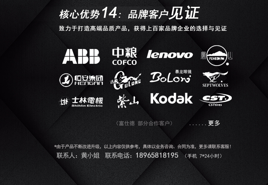 聯(lián)想、ABB、九牧 萬利達(dá)、CST古龍罐頭、七匹狼 正浩食品、紫山、中糧、宏發(fā)股份、暴龍眼鏡、士林電機(jī)、海堤、恒安、冠林、路達(dá)國(guó)際、海晟連鎖、鳳山安溪鉄觀音正新輪胎、圣莉雅壁紙、百得(廈門)等。