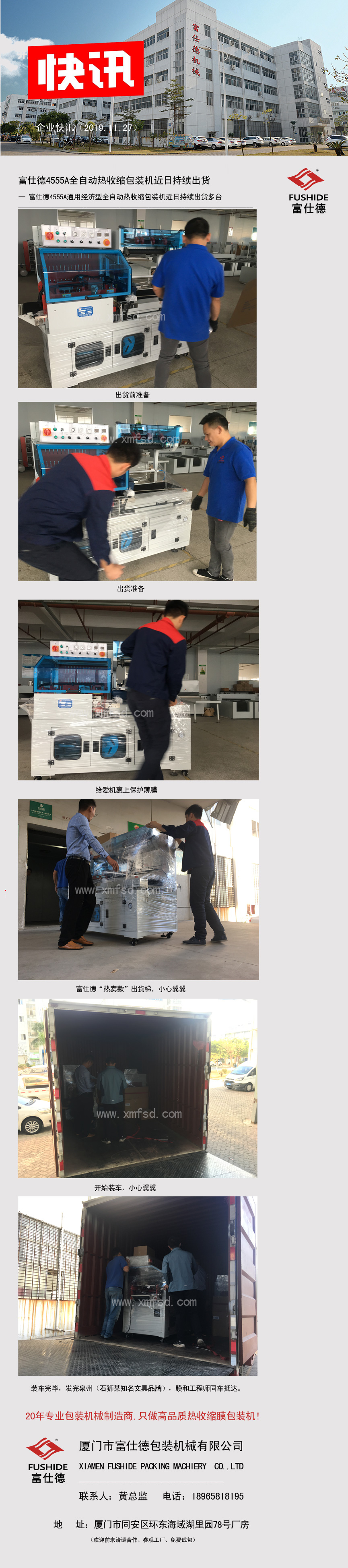 富仕德4555A全自動熱收縮包裝機近日持續(xù)出貨